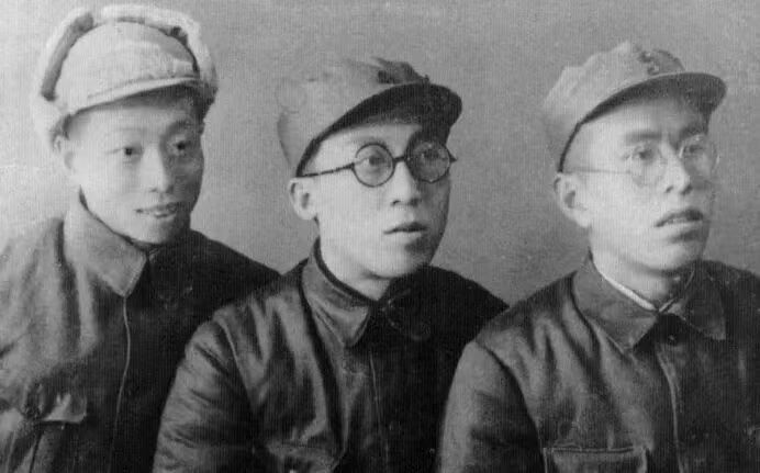 1945年冬,摄于安东市(今丹东市)。从右往左为陈楚、刘敬之、姜丕之