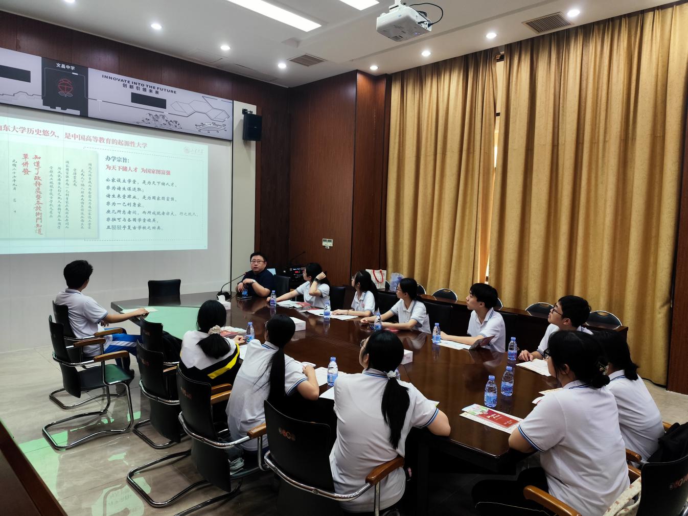 为深化校际合作,搭建高中与高校人才培养精准对接桥梁,拓宽优质生源渠道,4月7日至11日,山东大学海南招生组一行赴海南省开展拔尖创新人才系列活动。新闻传播学院院长助理孙晓翠、新闻学系系主任俞凡,山东大学齐鲁医院(第一临床学院)教育处处长吕明、临床技能培训中心杨淑华,齐鲁医院博士后宋亚萍参加相关活动。