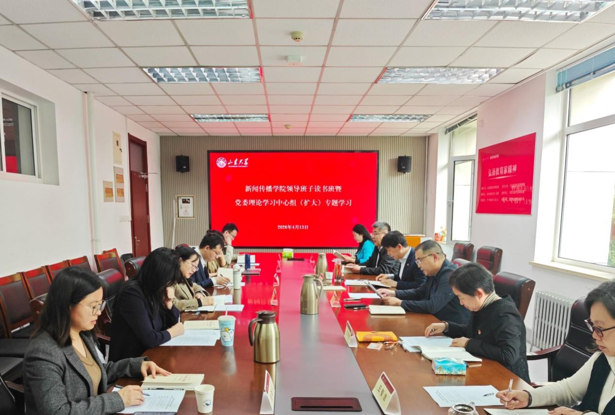 4月13日下午,新闻传播学院召开领导班子读书班暨党委理论学习中心组(扩大)专题学习会议,围绕《习近平关于树立和践行正确政绩观论述摘编》第七部分《推动管党治党责任落实到位》进行深入学习研讨。校党委副书记张帅出席并讲话,学院党委书记孙宜山主持学习。