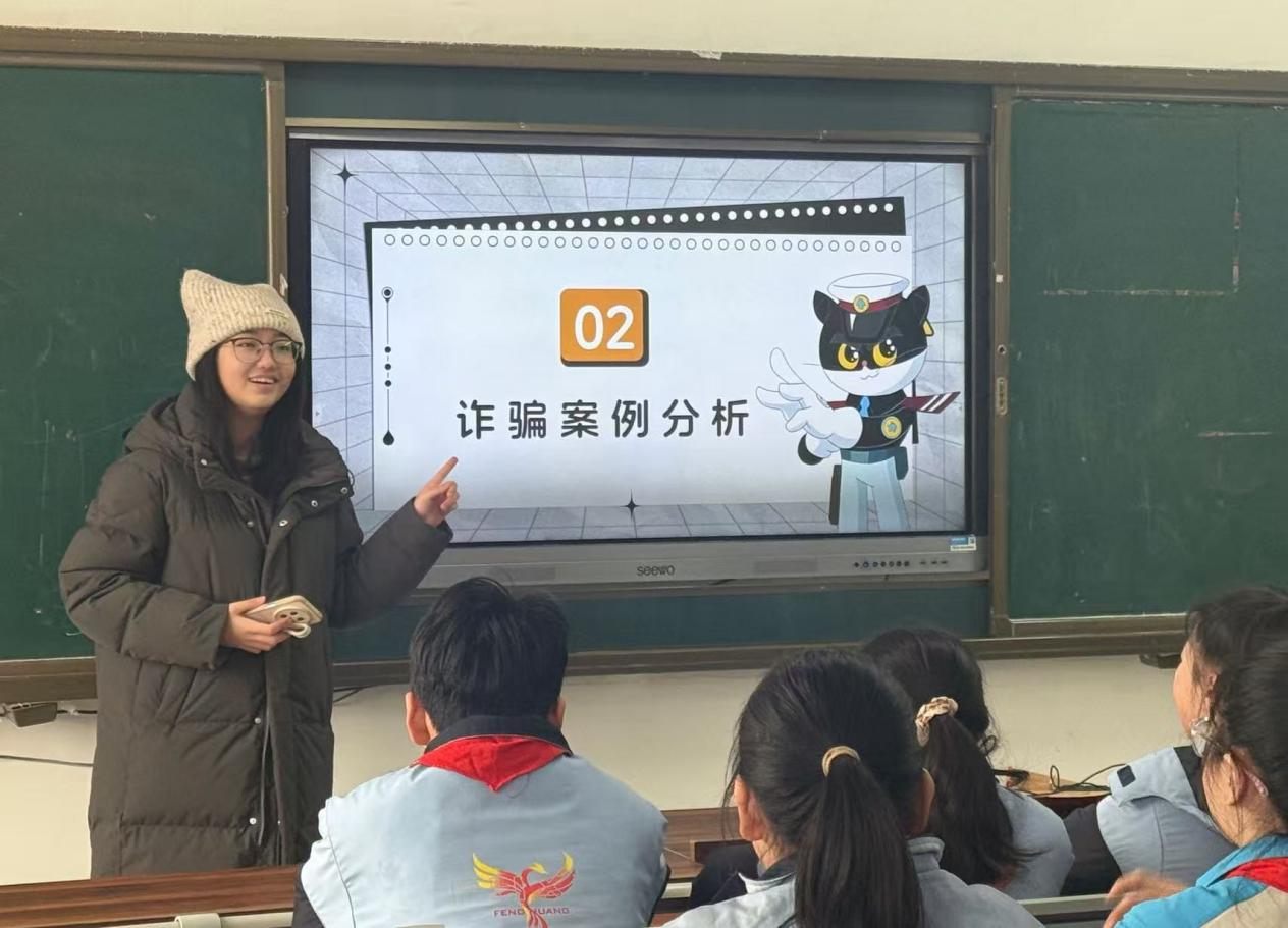 本次宣讲以富有童趣的“黑猫警长”主题PPT拉开帷幕,宣讲内容从“什么是电信诈骗、典型案例分析和如何做到反诈防骗”三个维度展开,呈现了一场兼具知识性与趣味性的反诈科普宣讲。活动现场,成员们依次登台,环节衔接紧凑流畅,以绘声绘色、生动鲜活的语言破译诈骗心理密码、拆解诈骗套路、普及防骗技巧,将抽象的反诈知识转化为孩子们易于理解的生活场景,给孩子以身临其境的感受,用童趣化表达点燃现场互动热情,让反诈理念在轻松的氛围中深入童心。