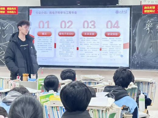 1月28日,王欣贤在临沂第一中学高二(38)班率先开展山东大学校史校情介绍。她以山东大学“学无止境,气有浩然”的校训为切入点系统讲解了学校的百年校史、办学理念与育人特色。重点介绍了优势专业的建设成果、课程体系和实践平台,用翔实的内容展现了山大深厚的文化底蕴与鲜明的办学风格,让同学们对山东大学的整体面貌有了全面认知。