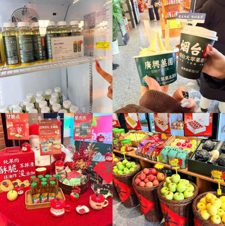 随后,实践队来到以苹果产品体验为核心、集苹果鲜果、深加工产品与周边衍生品于一体的“广兴果园”。在这里队员们品尝了鲜榨苹果汁、苹果醋,观摩了苹果干、苹果酥等特色食品,并细致了解了苹果文创产品的设计理念与市场反馈情况。广兴果园的发展现状不仅展现了烟台苹果产业的链条延伸与价值提升,更折射出传统农业与现代消费趋势相结合的品牌化可能。最后,队员们就产品创新、品牌包装、传播策略等议题与负责人进行了深入交流。