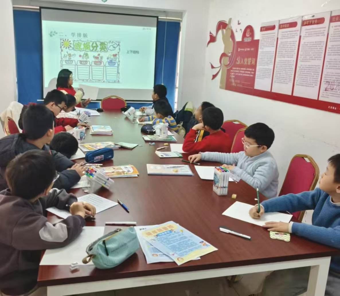 第二节课为垃圾分类主题手抄报创作。支教队员通过图文讲解、案例展示,向孩子们普及垃圾分类知识与环保理念,引导大家树立绿色生活意识。在队员们的耐心指导下,孩子们充分发挥想象力与创造力,用画笔与文字勾勒出一幅幅主题鲜明、色彩丰富的手抄报,在动手实践中加深对垃圾分类的理解,将环保理念内化于心、外化于行。