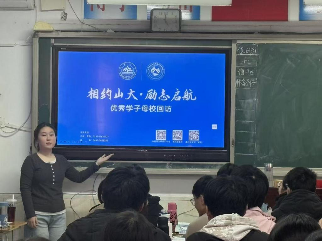 邢台市南和区第一中学八名实践队队员怀揣热忱齐聚母校,开展宣讲活动。此次母校回访,不仅是一次温情的重聚,更是一场薪火相传的接力——队员们曾是这里的学子,如今却带着百年山东大学的学术积淀与人文温度,化身为学弟学妹的成长引路人,为他们的升学逐梦之路指引方向、点亮星光。