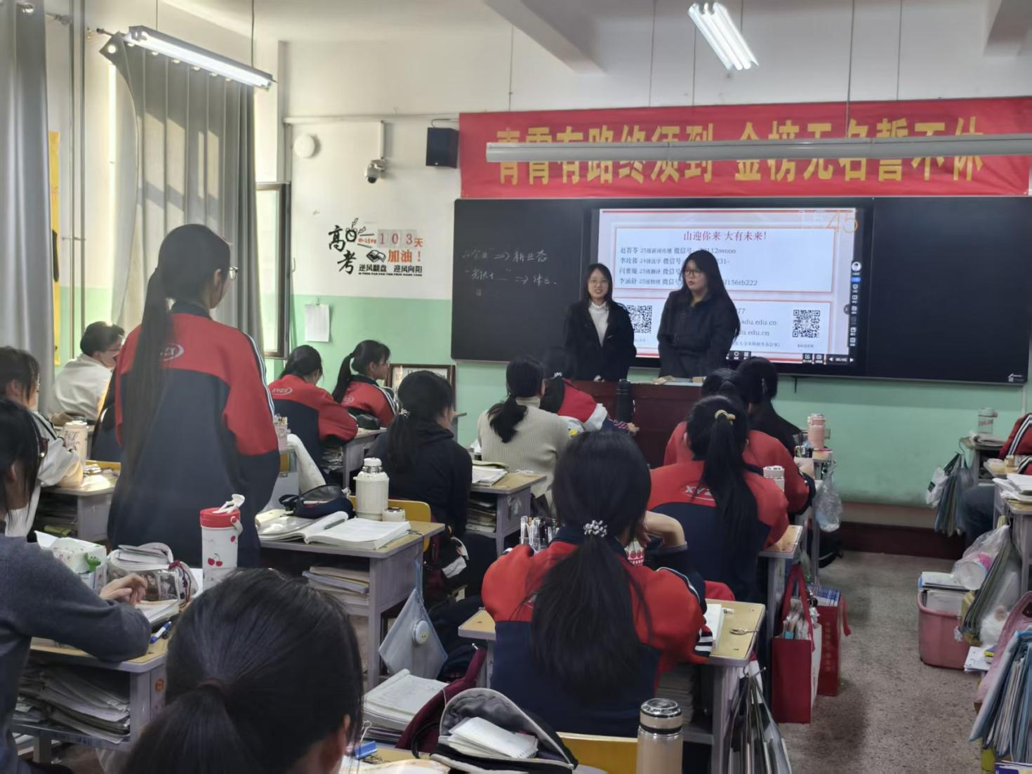 2月25日下午,宣讲队成员赵若苓、闫紫璇、李玫蓉、李涵舒于昔阳县中学校高三年级2214班开展宣讲活动。